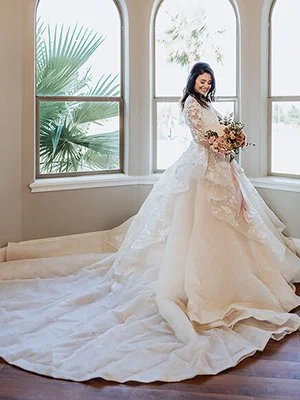 Overall, a chapel train is a stunning and elegant option for brides who want a long train without the inconvenience of a very long train.