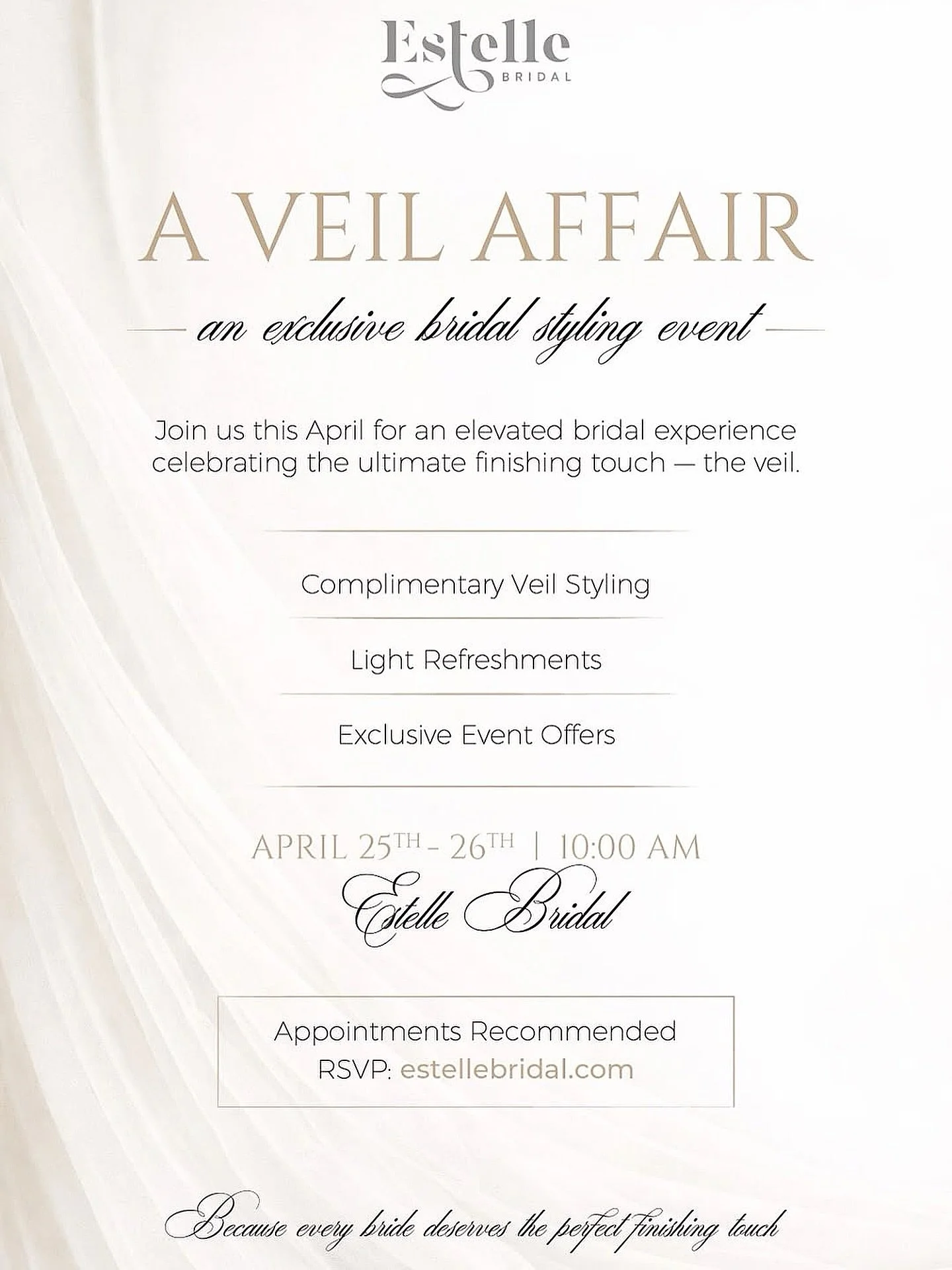 Book your appointment at Estelle Bridal and come in whenever you are ready to start.